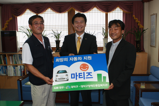 대전시 대덕구(구청장 정용기)가 17일 구청 구민의 사랑방에서 사회복지단체의 사회봉사를 위한 차량기증 인수 및 전달식을 가졌다. ▲ 정용기청장에게 차량 기증하는 GM대우자동차 이날 GM대우 한마음재단은 마티즈 차량 1대(싯가 800만원 상당)를 사회복지단체인 대덕구장애인종합복지관(관장 나봉균)에 기증했다. 저작권자 © 충청뉴스 무단전재 및 재배포 금지 송영혜 기자 다른기사 보기 기사가 마음에 드셨나요? 충청뉴스 좋은 기사 후원하기 1,000원 3,000원 5,000원 10,000원 30,000원 50,000원 직접입력 비회원 약관동의하기 ※ 소중한 후원금은 더 좋은 기사를 만드는데 쓰겠습니다.