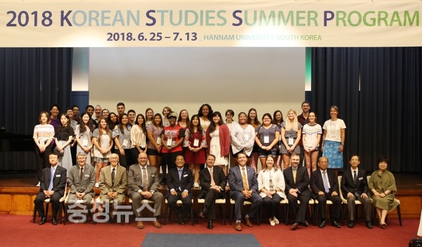 한남대학교(총장 이덕훈)는 25일 오후 영어권 해외 대학생 28명이 참가하는 ‘2018 한국학문화프로그램(KSSP)’ 개회식을 열고 한 달 간의 일정을 시작했다.