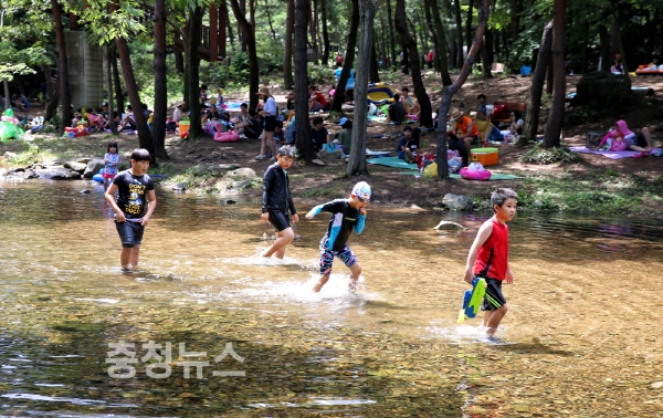 용현계곡에서 물놀이를 즐기고 있는 모습