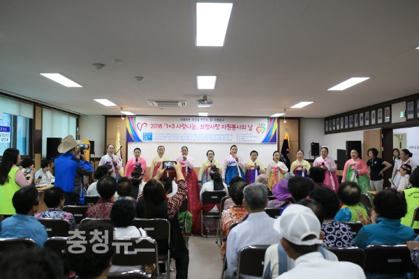 이날 행사에는 보령시자원봉사센터에 소속된 전문봉사단 14개 팀, 70여명의 자원봉사자가 참여해 ▲일반검진, 당뇨혈압체크 ▲한방의료 ▲전기안전점검 ▲돋보기나눔 ▲이동빨래 ▲칼갈이 ▲이·미용 ▲장수사진촬영 ▲손 마사지 ▲네일아트 ▲페이스페인팅 ▲국악공연 ▲급식지원등 다양한자원봉사를 펼쳐 훈훈함을 더했다.