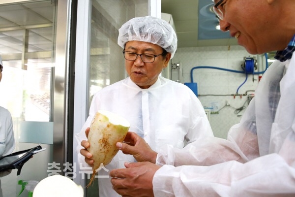 최교진 세종시교육감은 27일 한솔중학교 급식실을 방문해 식재료의 품질상태를 확인하는 등 위생 현황을 꼼꼼히 살폈다.