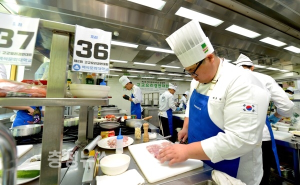 요리경연 대회에 참가한 학생