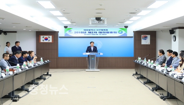 대전 서구체육회는 지난 26일 구청 대회의실에서 39명의 대의원이 참석한 가운데 서구체육회 제2차 대의원 총회를 열고, 장종태 서구청장을 만장일치로 ‘제2대 서구체육회장’으로 추대했다고 밝혔다.