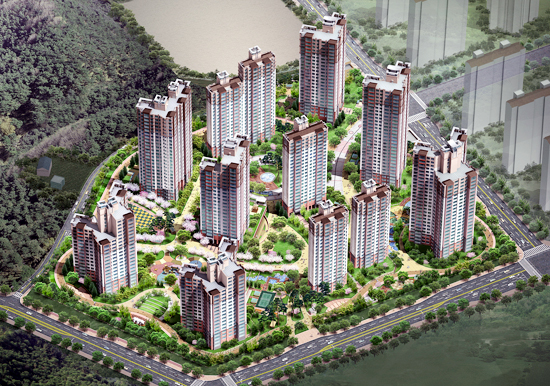 최고 28층 초고층의 웅장함과 함께 환경디자인을 적용하여 외관을 고급화하였으며, 판상형과 타워형의 조화와 단지 지상에 주차공간을 없애고 지하화 하여 쾌적함과 개방감을 더했다. 또한 플라자, 파크, 가든을 컨셉으로 한 다양한 테마공원도 조성.