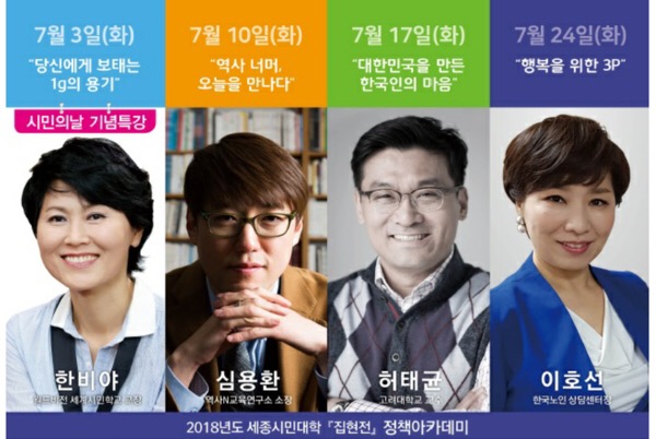 세종특별자치시(시장 이춘희)는 내달 3일~24일까지 ‘명사초청 특강’으로 정책아카데미를 운영한다.