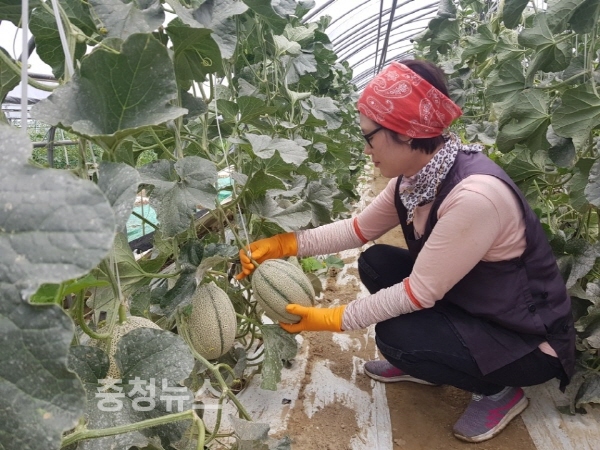 또한 새소득작목 신품종멜론(칸탈로프)재배 시범사업은 전년도에 충남농업기술원에서 주관한 3농혁신 지역창조농업 공모사업에 선정된 사업으로 1.3㏊(60동/495㎡)면적에 칸탈로프멜론 종자, 타이백필름, 친환경자재, 관수자재 등을 투입해 생산기반을 조성했다.