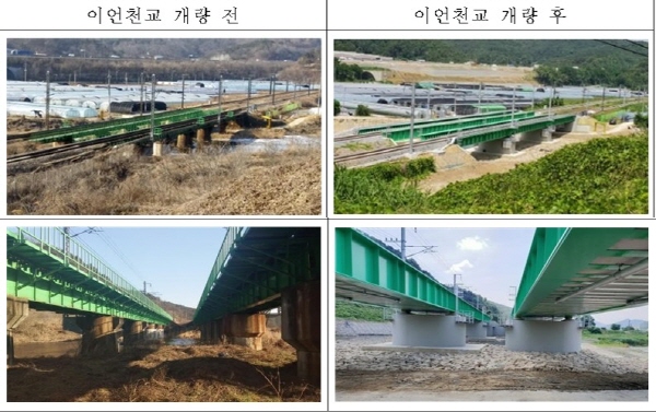 한국철도시설공단 충청본부(본부장 장봉희)는 경부선 신동역∼지천역 사이에 위치한 이언천교 개량공사를 29일 완료했다고 밝혔다.