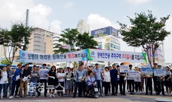 대전 유성구는 29일 유성온천역네거리에서 지체장애인협회유성구지회 등 유관기관과 함께 장애인전용주차구역 홍보 캠페인을 전개했다.