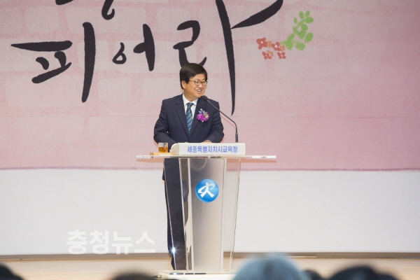 이어서, “세종교육 혁신 2기, 새로운 4년을 시작한다”며, “지난 4년의 어려움을 딛고 일어서 전국 최초의 ‘캠퍼스형 공동교육과정’과 ‘공립숲유치원’이라는 새로운 모델을 만들고 전국 최고 수준의 교육복지를 이뤘다”며 감회를 말했다.