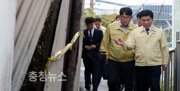 이날 현장점검은 태풍 북상에 따른 피해가 우려됨에 따라 예정된 민선7기 동구청장 취임식을 취소하고 구청 대회의실에서 취임 선서 후 안전도시국장 등 관련 부서 부서장과 안전 분야 전문가를 대동하여 민관합동으로 실시했다.