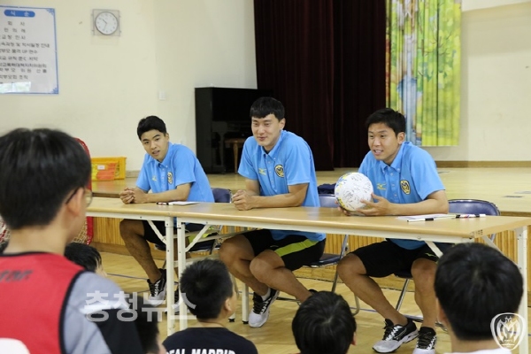아산무궁화프로축구단(대표이사 박성관)이 지난달 29일 오전, 충무초등학교를 찾았다.