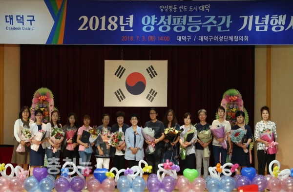 이날 기념행사에 박정현 대덕구청장은 “이번 양성평등주간 기념행사를 통해 양성평등 선도 도시 대덕을 만드는 데 적극적인 관심과 지원을 아끼지 않겠다”고 밝혔다.