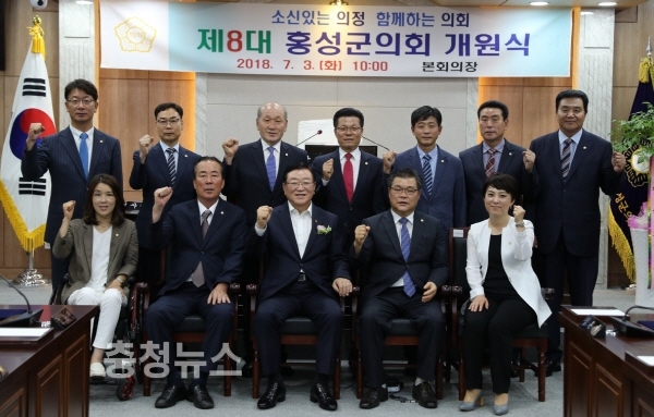 홍성군의회는 3일 의회 본회의장에서 군민행복과 군민과 함께할 천년홍주를 위한 새 출발을 알리는 제8대 홍성군의회 개원식을 갖고 4년간의 의정활동에 돌입했다.