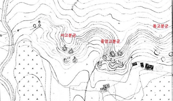 - 3차 조사(1938년): 우메하라 스에지(梅原末治) 조사단이 동고분군 5기 조사