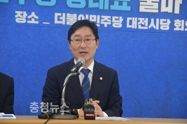 박 의원은 이날 오후 시당에서 기자회견을 갖고 "민주당은 기회와 위기의 갈림길에 서 있다. '문재인 대통령만 보이고 민주당은 보이지 않는다'는 당원들의 따끔한 의견이 이어지고 있다"고 혁신의 필요성을 역설했다.