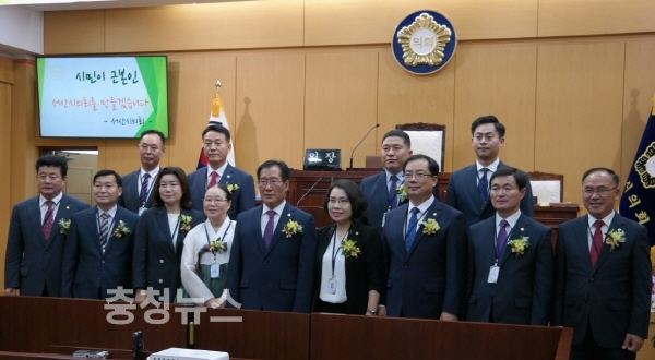 서산시의회 의원은 임재관 의장, 가충순, 김맹호, 안원기, 안효돈, 유부곤, 이경화, 이수의, 이연희, 장갑순, 조동식, 최기정, 최일용 의원 등이다.