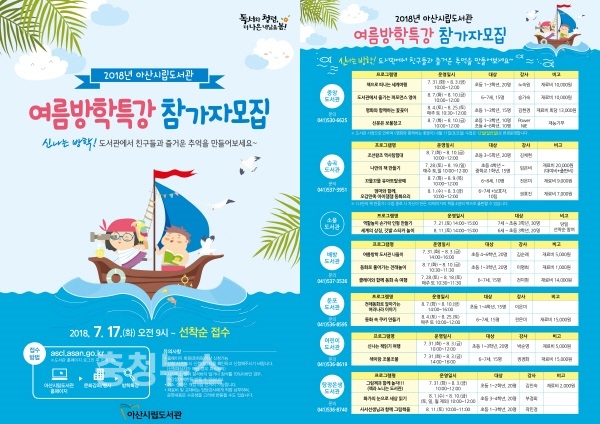 2018년 아산시립도서관 여름방학특강 참가자모집 홍보지