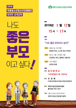 공개강좌는 교사, 학부모, 아동·청소년 상담 유관기관 종사자들은 누구나 참여 가능하며, 대덕구정신건강복지센터로 문의하면 된다.