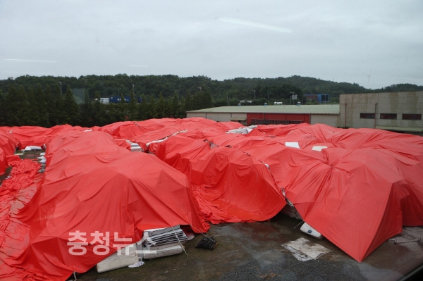 대진침대 본사에는 매트리스 2만여장이 쌓여 있으며, 본사 정문 앞에는 판정리 주민들이 천막을 치고 돌아가며 집회를 이어가고 있다.