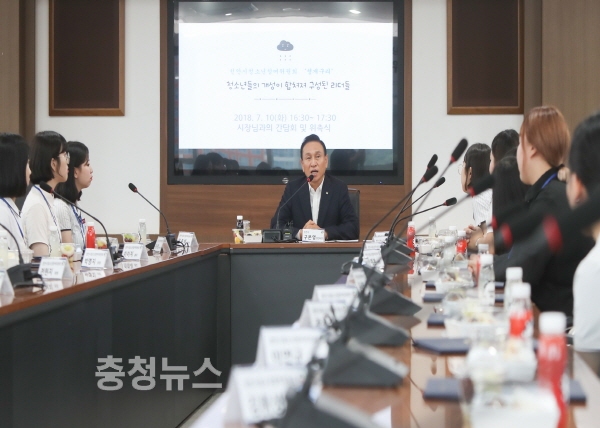 충남 천안시와 천안시태조산청소년수련관(관장 윤여숭)이 지도하고 있는 천안시청소년참여위원회(위원장 윤주희, 신당고2)가 지난 10일 시청 중회의실에서 간담회를 개최했다.