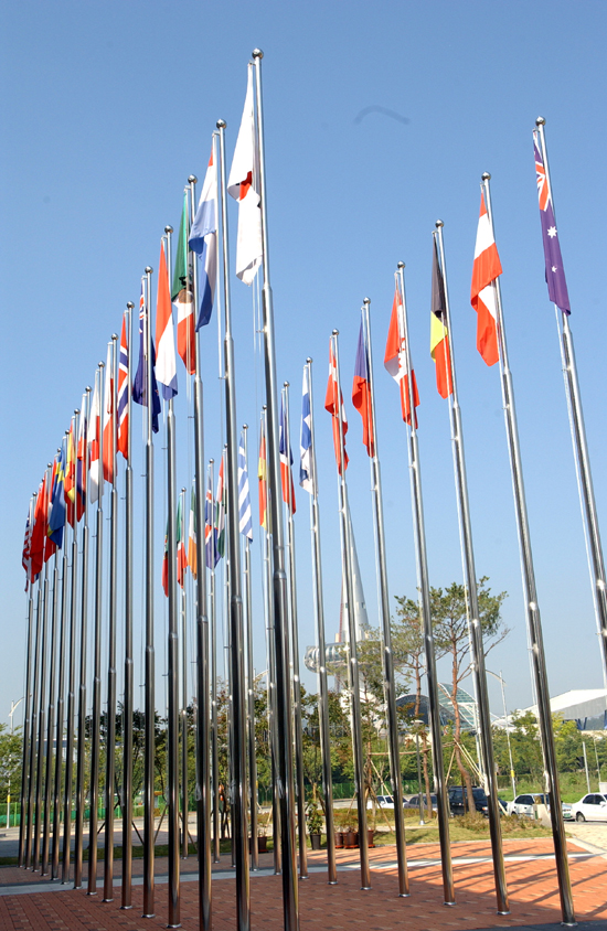 오는 9일 대전컨벤션센터에서 개막하는 제6차 WTA(세계과학도시연합)총회를 8일 남겨둔 가운데 이번 총회에 참가하는 30개국의 국기가 행사장에 게양돼 분위기를 한껏 돋우고 있다.