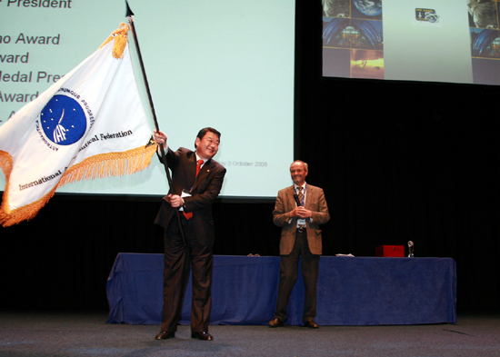 IAF 짐머만 회장으로부터 대회기를 인수받은 박성효시장과 백성열 항우연원장은 ‘IAC 2009 대전대회’의 성공적인 개최를 대내외에 약속했다.