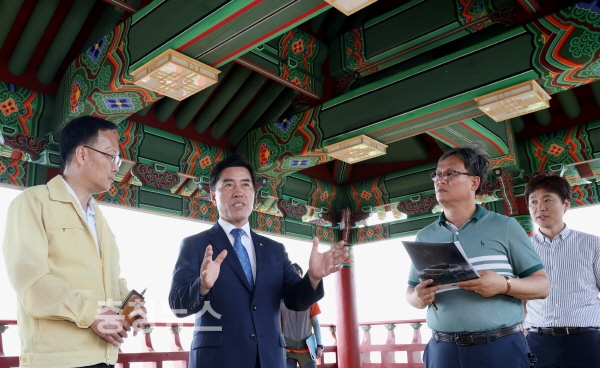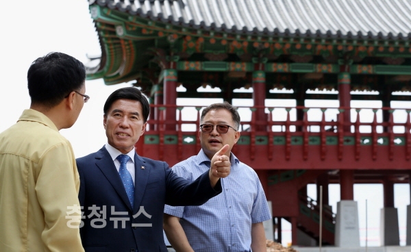 이날 현황 브리핑과 함께 한옥형 누각 등 주변 시설을 둘러보며 공사 관계자들을 격려하고 완공까지 최선을 다해 임해줄 것을 당부했다.