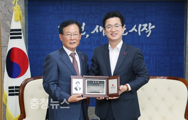 이날 시장실에서 열린 위촉식에는 안기호 대전사회복지공동모금회장 등 관계자들이 참석해 명예회장 위촉패를 전달하고 기념촬영을 했다.