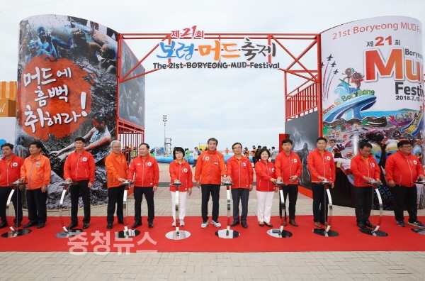 충남 보령시는 13일 오전 대천해수욕장 머드광장에서 머드체험시설 개장식을 열고 본격적인 제21회 보령머드축제의 개막을 알렸다.