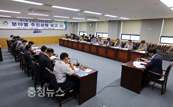계룡시(시장 최홍묵)는 13일 시청 상황실에서 제24회 충청남도장애인체육대회의 성공개최를 위한 분야별 준비상황 보고회를 개최했다.