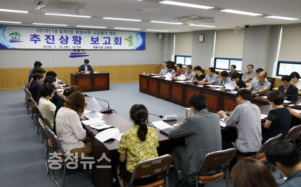 계룡시(시장 최홍묵)는 지난 12일 시청 상황실에서 안일선 부시장 주재로 실·과장 등 직원 70여 명이 참석한 가운데, 2019(2018년 실적)년 위임사무 시‧군 평가 대비 추진상황 보고회를 가졌다.