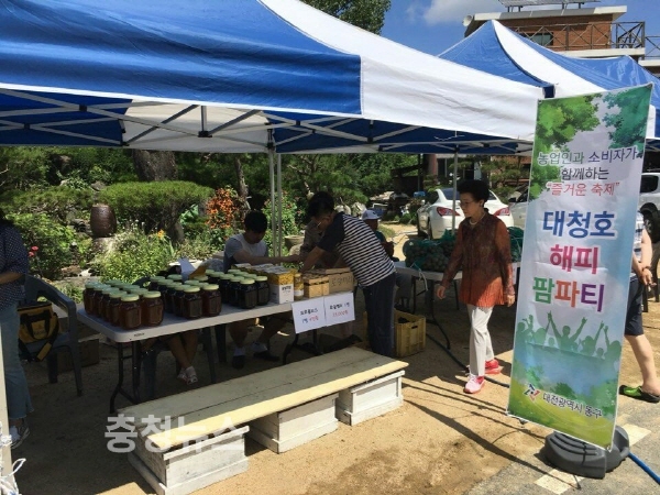 대전 동구(구청장 황인호)는 지난 14일 주촌동 양봉농장일원에서 농업인과 도시민 50여 명이 참여한 가운데 대청호 해피 팜파티(farm party) 행사를 개최했다.