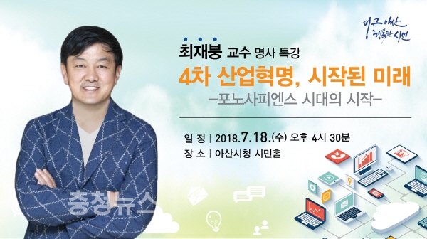 충남 아산시(시장 오세현)는 18일 아산시청 대강당 시민홀에서 명사특강을 진행한다고 밝혔다.
