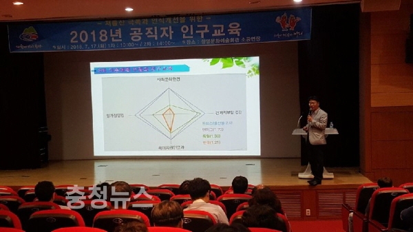 충남 청양군은 17일 문예회관에서 공직자 250여명을 대상으로 저출산·고령사회에 따른 인구문제의 심각성을 인식하고 인구감소에 대응하기 위한 교육을 가졌다.