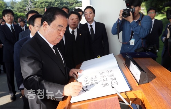 문희상 국회의장은 17일 오전 서울 동작구에 위치한 국립현충원을 찾아 참배했다.