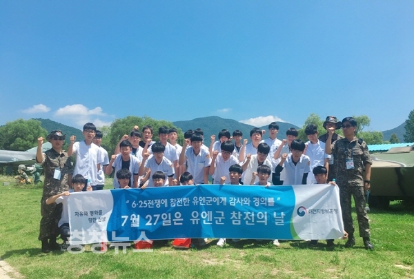 이날 행사는 대전지방보훈청, 육군인사사령부 제대군인지원처, 대전충남남지방병무청과 업무 협업 체결에 의해 추진되는 육군 ‘나라사랑 체험학교’ 프로그램을 통해 7‧27 유엔군 참전의 날을 알리고자 계룡대 내에서 실시됐다.