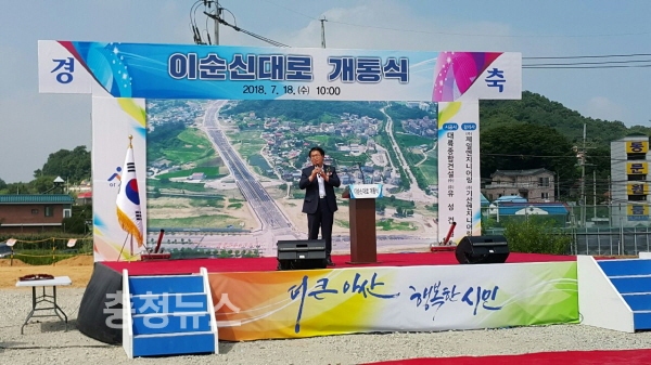 개통식 행사는 도로공사 경과보고와 유공자 감사패 증정을 시작으로 오세현 아산시장의 기념사와 김영애 아산시의회 의장, 강훈식 국회의원의 축사가 이어졌다.