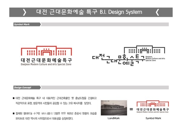 대전시는 근대문화예술특구의 정체성 확립과 근대문화예술도시 대전의 위상 제고를 위해 지난 2월부터 6월까지 근대문화예술특구 BI 디자인 개발을 위한 연구용역을 실시했다.