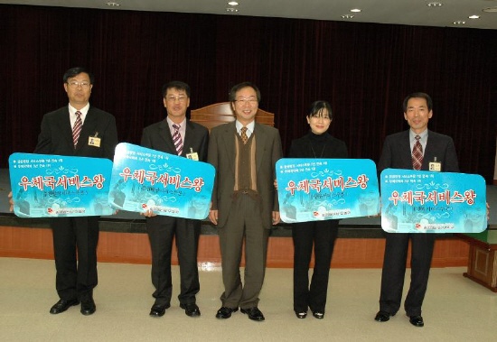 이 상은 공공행정서비스부분 고객만족도 7년연속 1위 달성을 기념하기 위해서 처음으로 실시한 것으로 서비스왕은 창구직원, 집배분야는 외부고객의 추천, 관리분야 및 발착분야는 내부직원의 추천으로 후보자를 선발하여 우수사례심사와 전화모니터링으로 심사하였다.