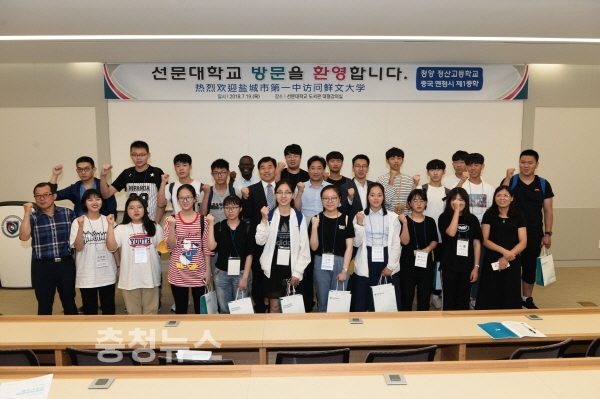 중국 장쑤성 옌청시 제1중학교와 한국 청양군 정산고등학교 학생 30여 명이 19일 선문대 방문
