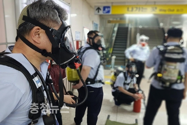 공사는 지난 5월 유성구청, 북부소방서, 유성경찰서, 505여단 등 17개 기관과 일반시민이 참여한 가운데 지진으로 인한 지하철 화재사고 대응 안전한국훈련을 실시했다.
