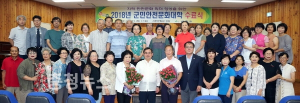 충남 서천군(군수 노박래)은 지난 19일 서천문화원 강당에서 ‘2018년 군민안전문화대학’ 수료식을 개최했다.