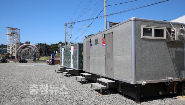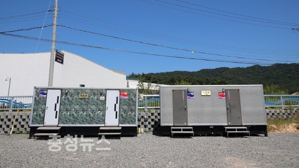 본격적인 피서철을 맞아 태안군이 공중화장실 수요 증가에 대비해 해수욕장 등 주요 지역에 깨끗한 이동식 화장실을 설치해 눈길을 끈다.