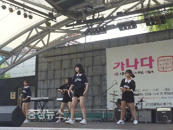 대전 중구(구청장 박용갑)는 지난 21일 대흥동 우리들공원에서 세 번째 2018년 중구 청소년 어울림마당을 개최했다.