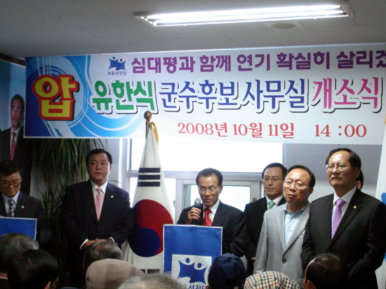 오는 10월29일 충남연기군수 보궐선거후보 등록을 앞두고 한나라당 기호1번 연기군수 예비후보 최무락와 자유선진당 기호3번 유한식후보가 11일과 12일 중앙당 지도가 대거 참석한 가운데 각각 사무실 개소식을 열고 선거전에 돌입했다.