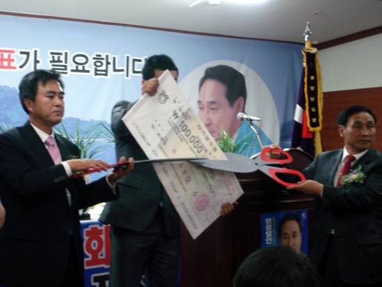 한나라당은 12일 오후 최무락 후보는 사무실 개소식을 열고 " 왜 선거를 치를 때마다 깨끗이 선거를 못하고 돈선거를 해야 합니까? 이번에는 반드시 깨끗한 선거를 해야 합니다.그래야 모두 선거가 끝난후에 모두 승복을 할 것이고 군민 모두 존경을 받을 것이라고 말했다.