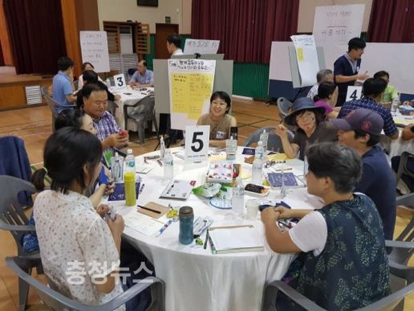 연일 계속되는 폭염에도 아랑곳 하지 않고 홍동주민 160여 명이 원탁회의에 참가했다.