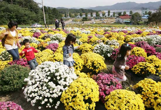 쪽빛 대청호반과 형형색색의 국화 꽃 물결, 그리고 그 위를 흐르는 짙고 그윽한 국화꽃 향기.
