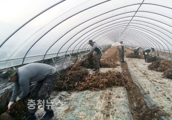 8361부대3대대(대대장 김덕준 중령) 장병 30여명은 26일 무더위와 일손 부족으로 어려움을 겪고 있는 장암면 합곡리 조종연 농가를 찾아 일손을 도왔다.