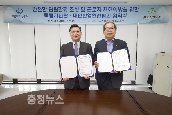 독립기념관(관장 이준식)은 대한산업안전협회(회장 윤양배)와 26일 독립기념관 겨레누리관에서 관람객의 안전한 관람환경 조성과 기념관 근로자의 재해예방을 위해 업무협약을 체결했다.